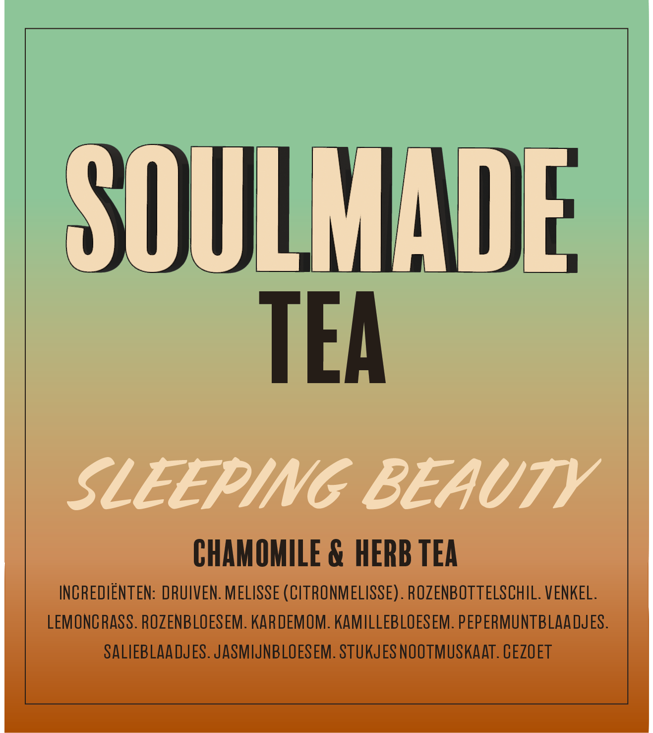 LEMONGRASS, ROZENBLOESEM, KARDEMOM, KAMILLEBLOESEM, PEPERMUNTBLAADJES,